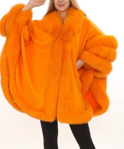 Luxurious and effortlessly elegant, this Orange Cashmere Cape with Fox Trim is the ultimate statement piece for the colder months. Crafted from sumptuously soft cashmere, it drapes beautifully over the shoulders, offering a chic and sophisticated silhouette.