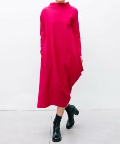 Crafted from soft, stretchy jersey fabric, it offers a flattering fit that moves with you while draping beautifully over the body. The asymmetrical hemline adds a contemporary edge, creating a dynamic silhouette that stands out.